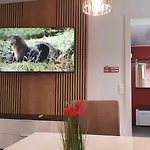 - ❓What amenities are available in the rooms of this apartment?The rooms of this apartment provide coffee/tea making machines, a sitting area and a satellite TV.